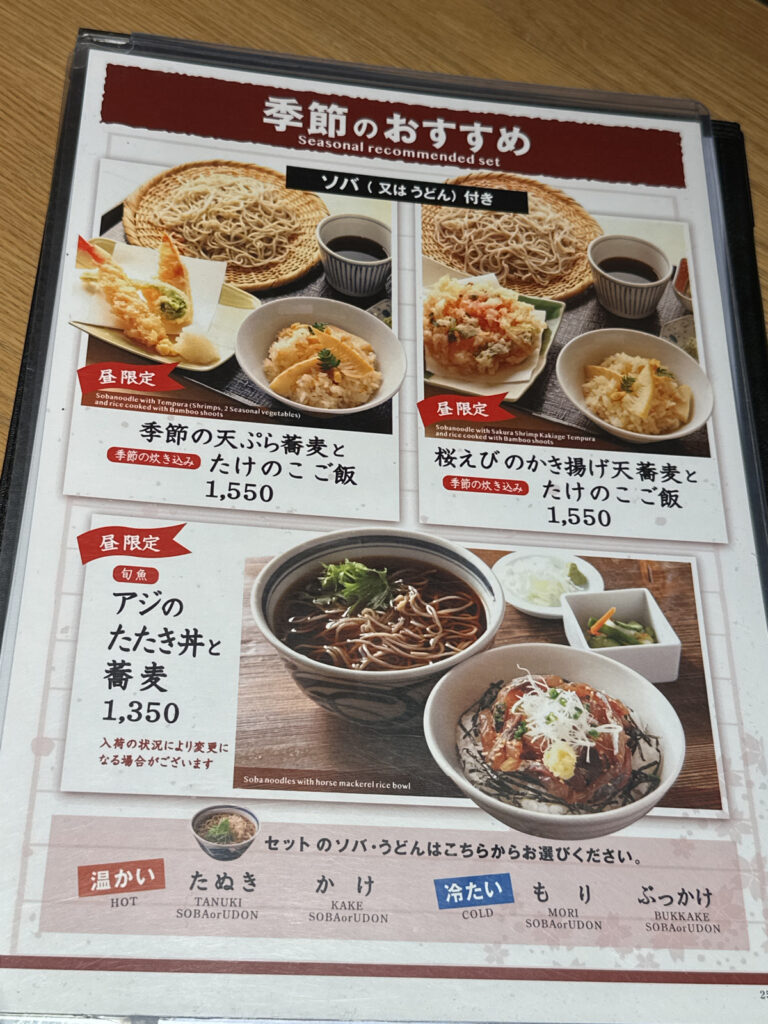 ソバキチさんの季節メニューは、