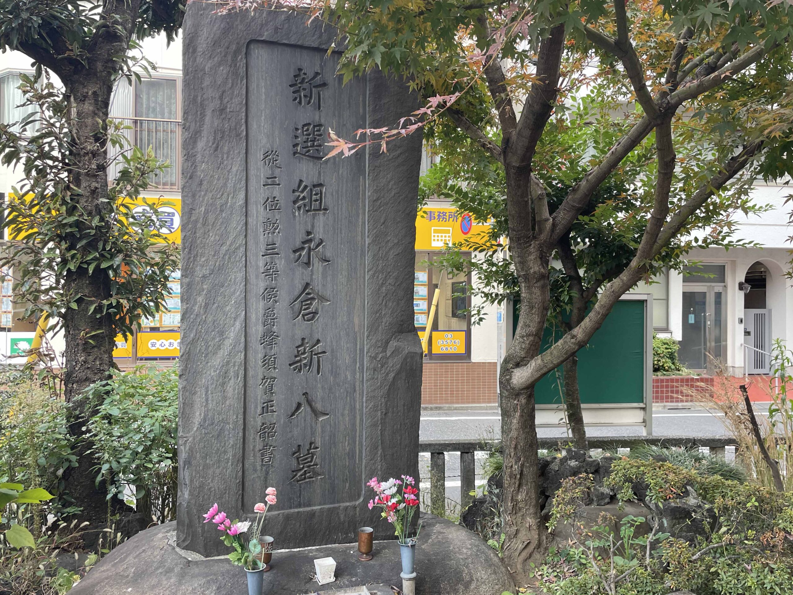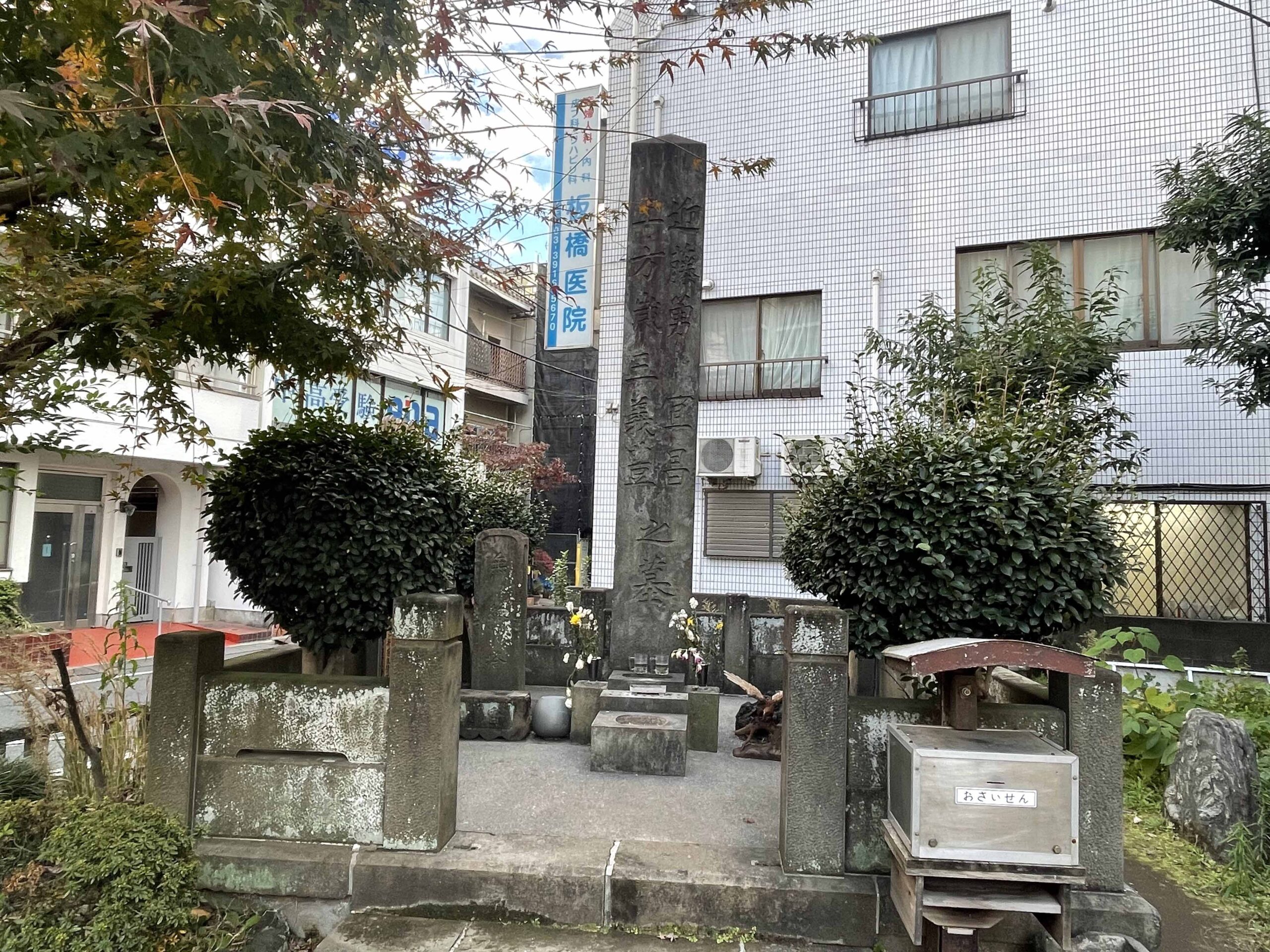 駅からすぐ目の前に近藤勇の墓。